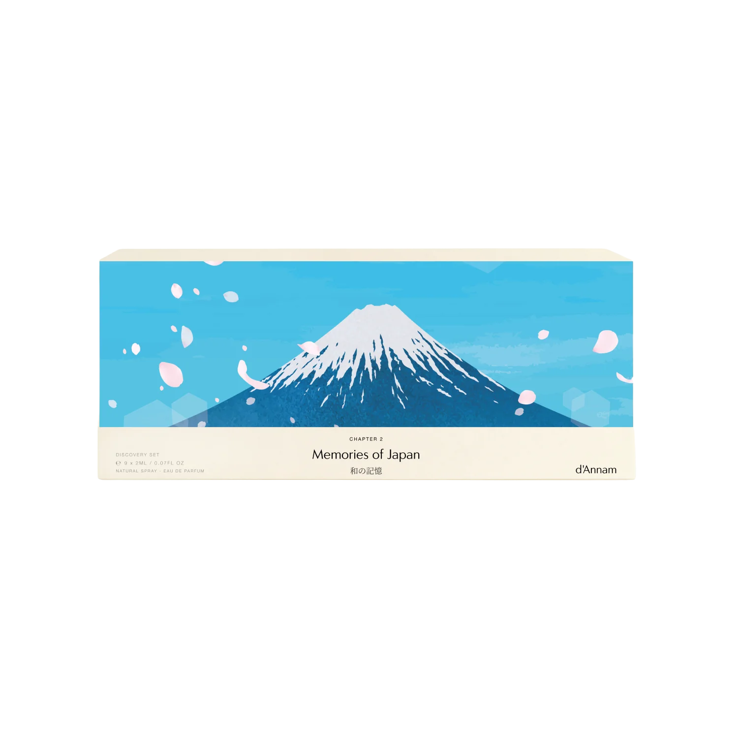 Contains 2ml of nine fragrances: Moonlight Samurai, Tokyo Nights, Sakura Snow, Matcha Soft Serve, Strawberry Mochi, Kimono, Arashiyama, Hinoki Meditation & Japanese Whiskey.