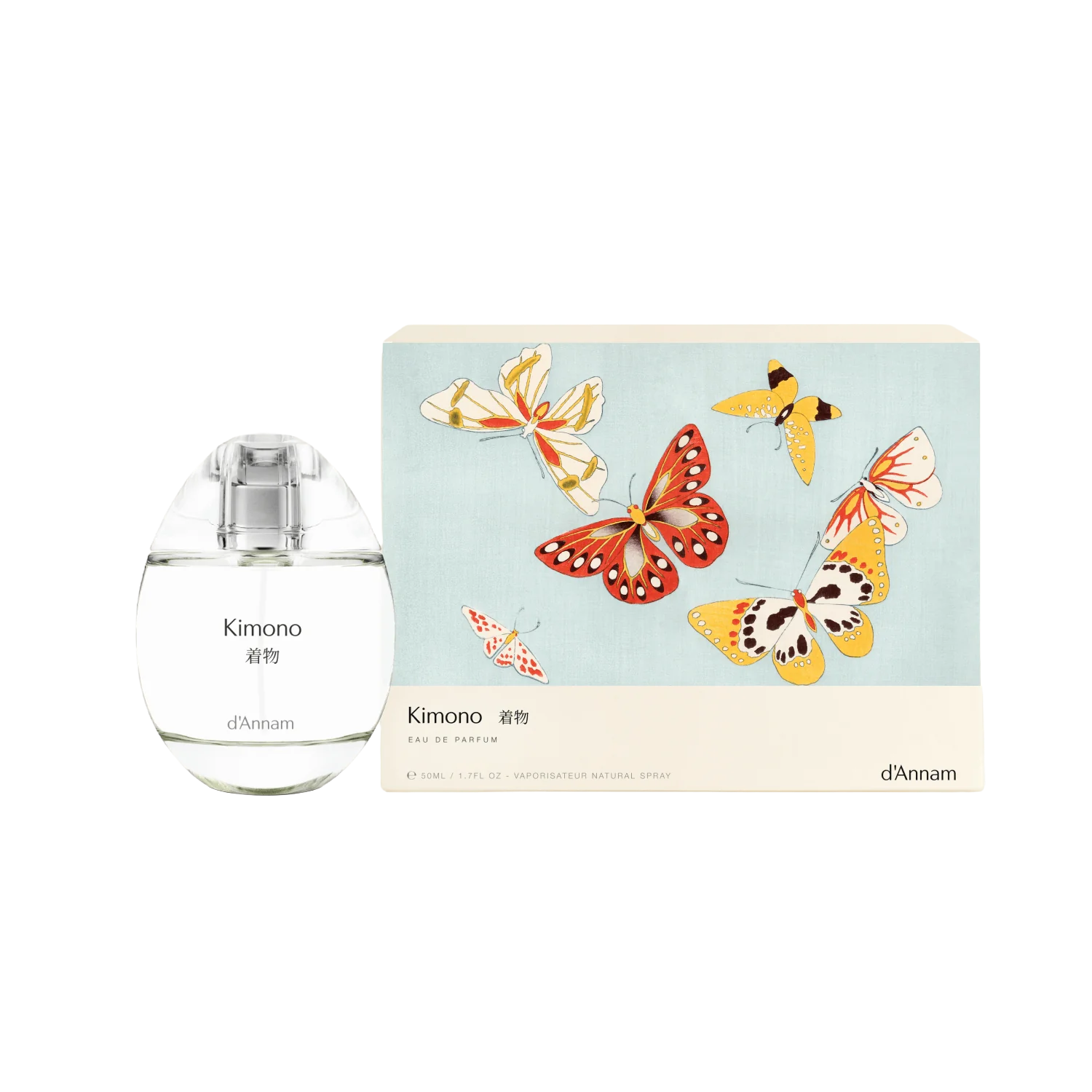 Kimono is a poetic tribute to the elegance of the geisha, draped in the flowing grace of a silk kimono. Magnolia petals evoke delicate beauty, while rice flour reflects the soft powder of their makeup. The rustle of silk lingers, and a touch of crimson lipstick adds quiet allure. A fragrance of timeless grace and sophistication.
