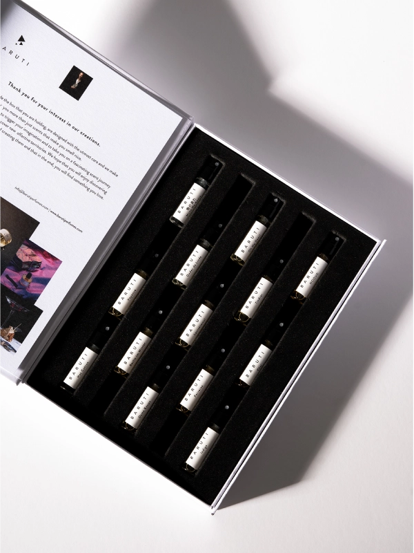 Over the years, Baruti has grown into a respected name in the world of niche fragrance, stocked internationally and beloved by those seeking individuality and intensity in scent. Yet despite this reach, production remains intimate, with all compositions and compounding done in-house to ensure authenticity and creative control.