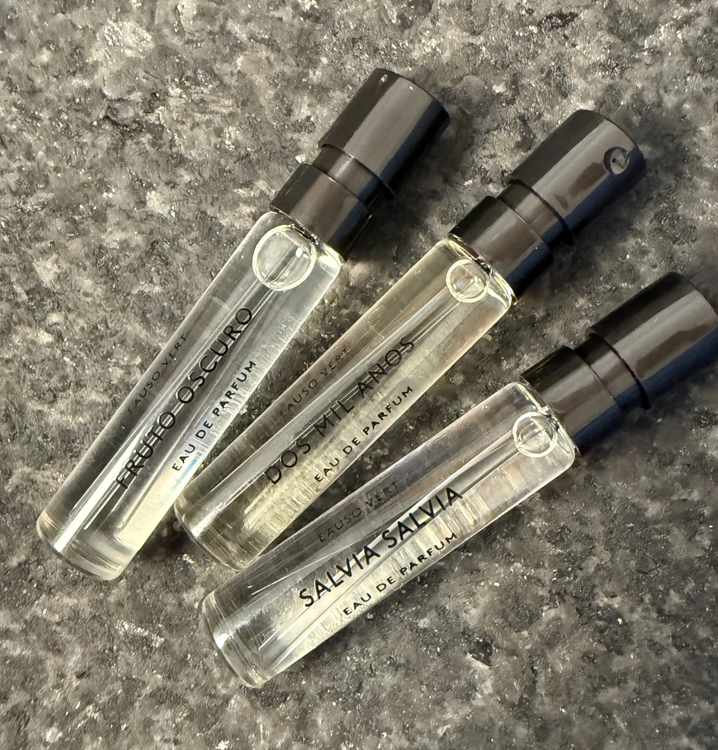 The collection showcases this ethos through distinct compositions. Dos Mil Años, inspired by ancient landscapes and the enduring resilience of nature, combines earthy resins, smoky woods, and mineral undertones to create a deeply atmospheric scent. Fruto Oscuro offers a darker, gourmand profile with rich fruits, patchouli, and incense, crafted by Rodrigo Flores-Roux. More recently, Salvia Salvia introduced a modern aquatic fougère with upcycled sage and mineral sea salt facets, capturing the essence of freshness with a sustainable twist. Each fragrance tells a story that bridges memory, place, and culture.