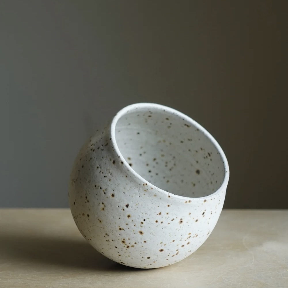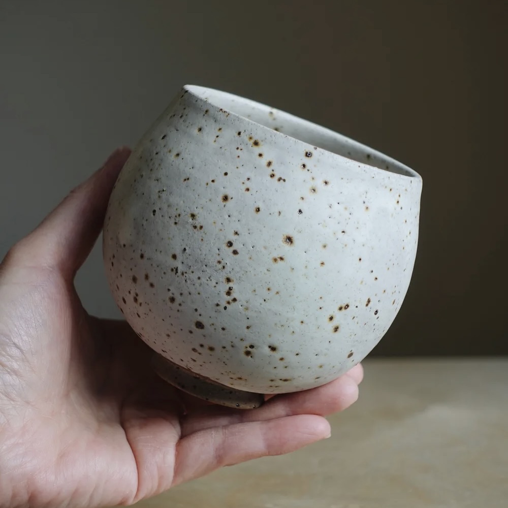 Hand-thrown stoneware ceramic cup finished in freckled white, glazed in several layers and fired at 1230ºC.