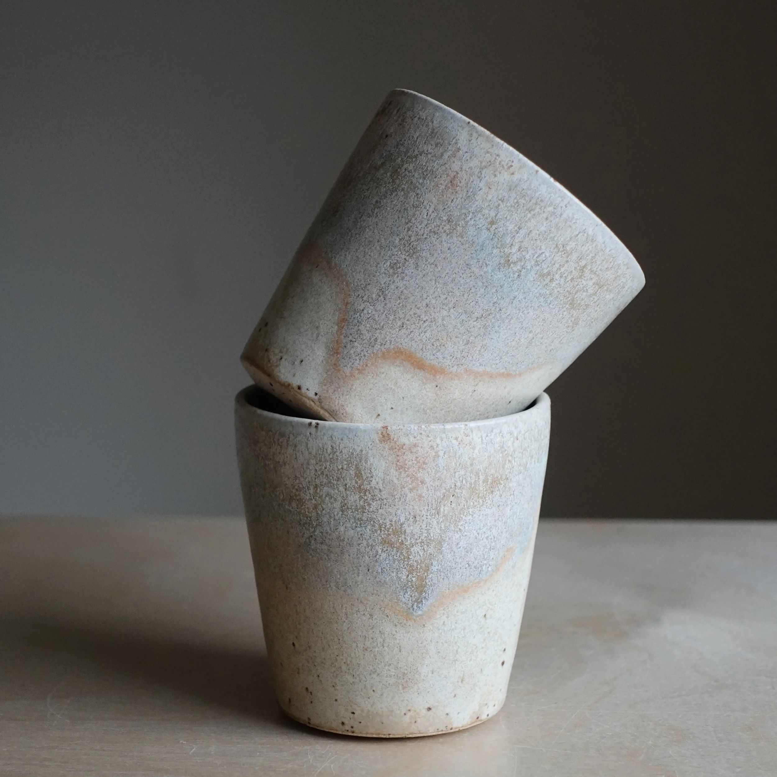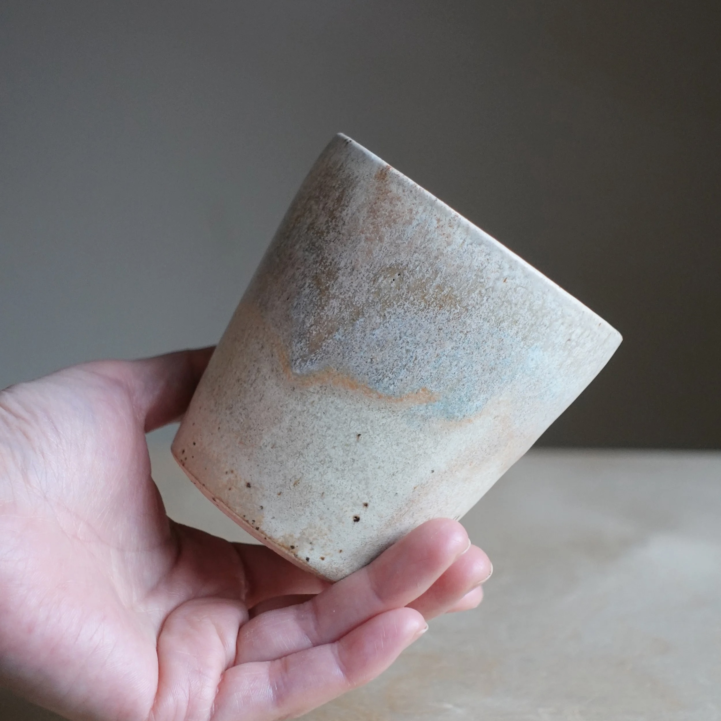 Hand-thrown stoneware ceramic cup finished in Nebula, which is created with multiple layers of glaze fired at 1230ºC. Nebula takes inspiration from the swirling colours and textures of nebulae – vast clouds of gas and dust in space where stars are born. The layers capture the dynamic, ever-changing beauty of these celestial formations, giving the cup a unique depth and movement.