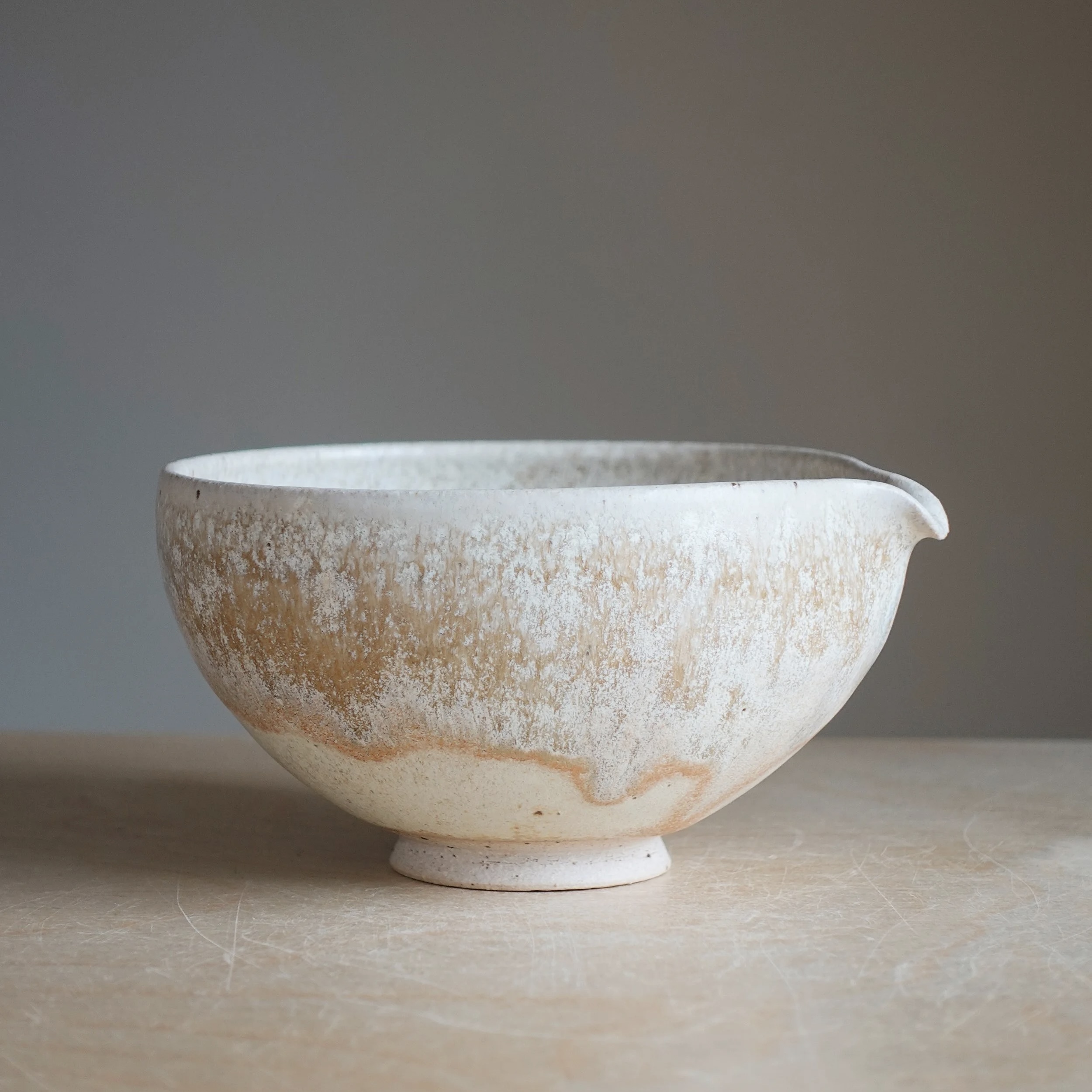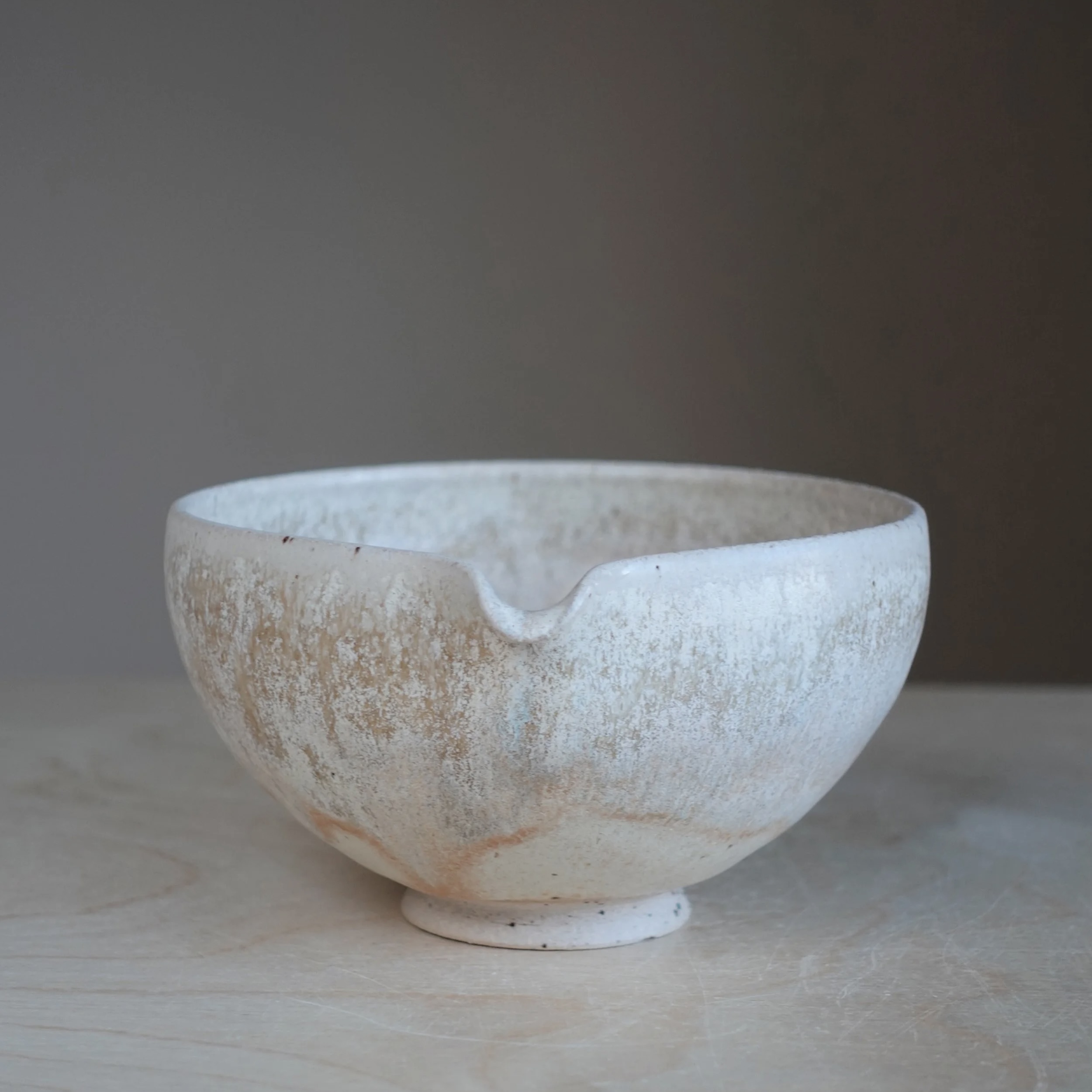 Hand-thrown stoneware ceramic katakuchi matcha bowl finished in Nebula, which is created with multiple layers of glaze fired at 1230ºC. The asymmetrical spout allows for a clean, controlled pour, making it well-suited for preparing and serving matcha. Nebula takes inspiration from the swirling colours and textures of nebulae – vast clouds of gas and dust in space where stars are born. The layers capture the dynamic, ever-changing beauty of these celestial formations, giving the bowl a unique depth and movement.