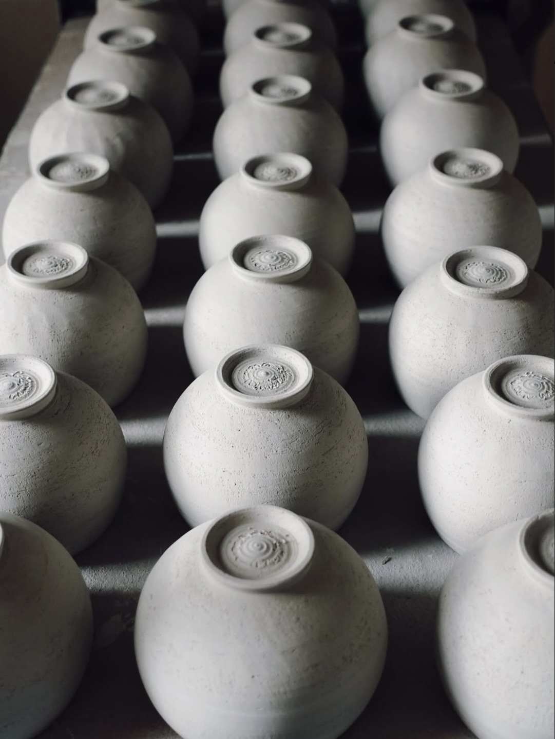 Her practice bridges tradition and experimentation: the precision of Japanese making meeting the elemental forces of nature. This is expressed through quiet materials, measured rhythm, and a sense of enduring presence. She works in small, intentional batches, refining wheel-thrown forms by hand and favouring muted palettes that allow texture and detail to take the lead. Collections are released a few times each year through her website and tend to sell out quickly.