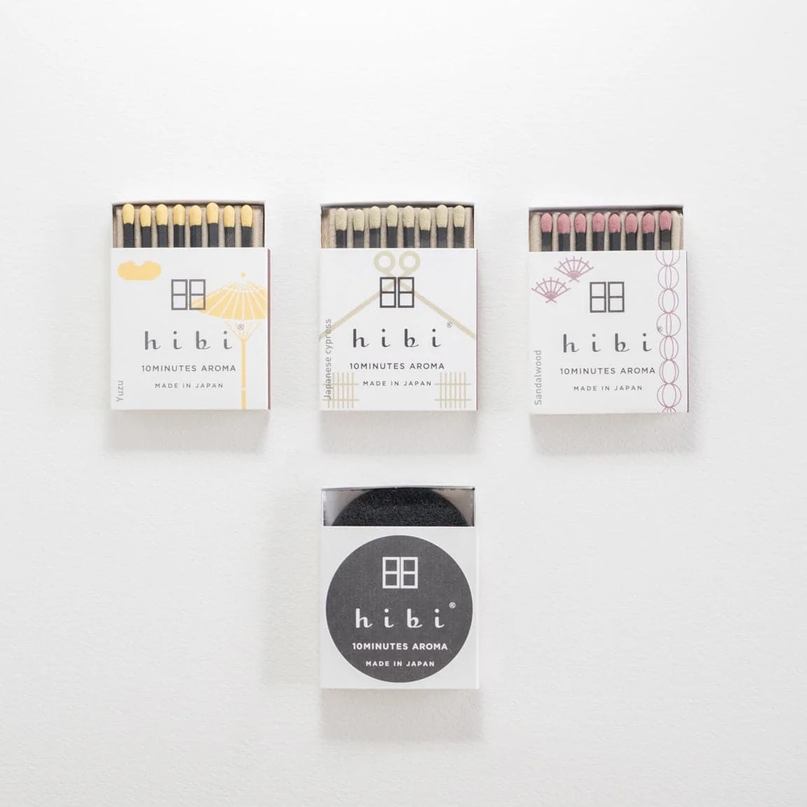 Hibi was formed by the collaboration of two traditional manufacturers in Japan – The Kobe Match Co. (1929), and The Daihatsu Corporation (1936). The name hibi means ‘day to day’, or daily, in Japanese. It was chosen to signify the simplicity of the incense matchsticks – a product that can be enjoyed every day. The logo’s design combines two of the Chinese character ‘日’ (day) set next to each other. The brand is driven by simplicity, and as such, the products and packaging convey the sensibilities of today’s Japan.