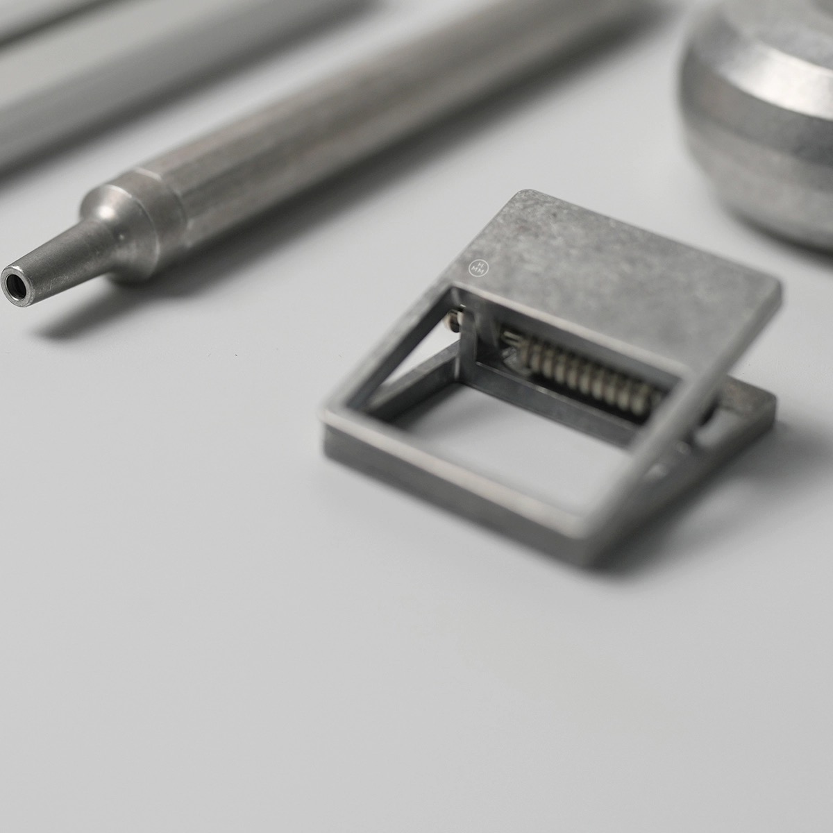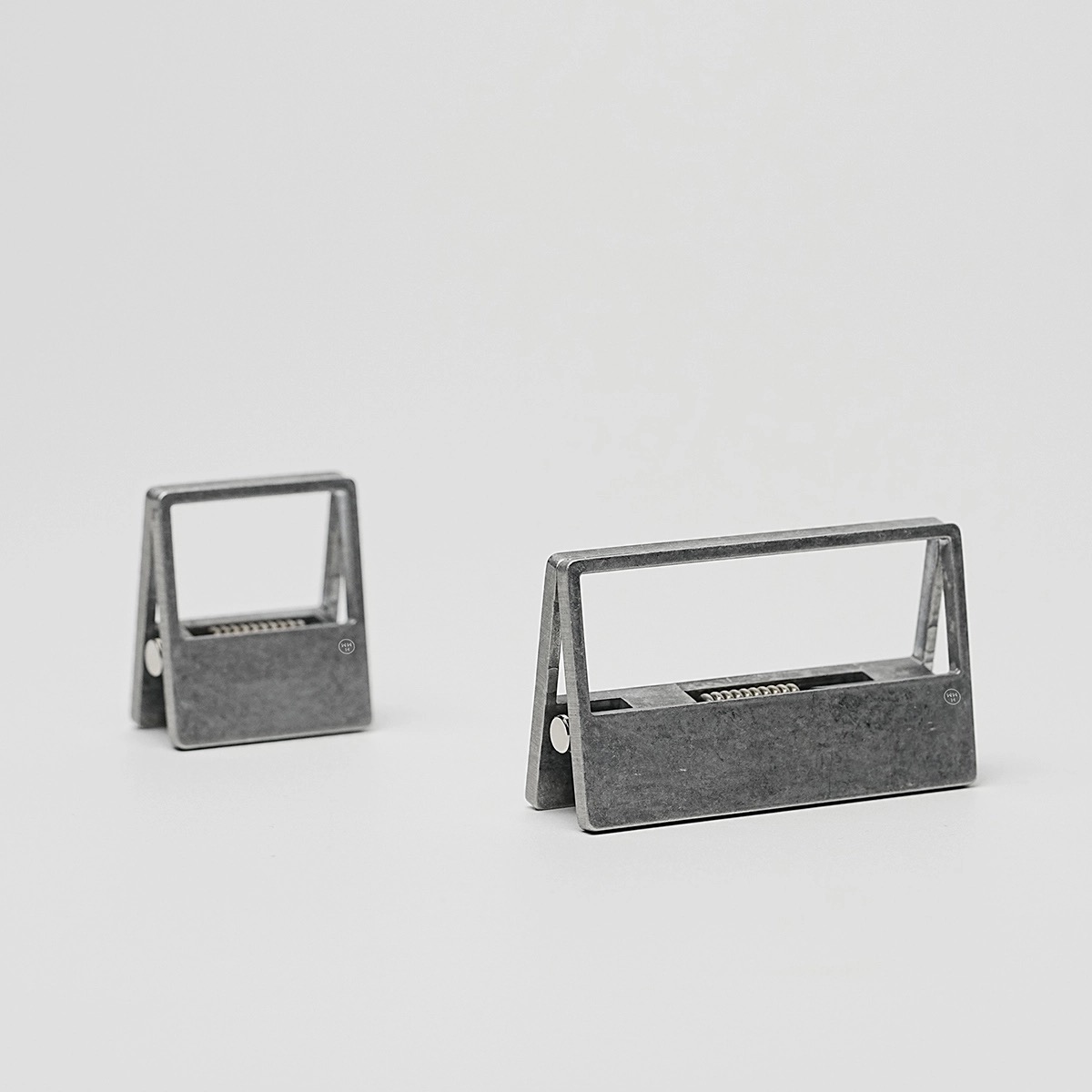 The HMM Clip embodies order between the virtual and tangible with its unique hollow design and strong spring for secure document clipping. Electroplating creates a matte black finish, and the slim aluminium frame effectively secures documents. Its minimalist and industrial design overcame functionality challenges with adjustments to the profile and inserting a higher poundage spring. It can hold 40 sheets of A4 paper when flat, suitable for invoices and notes. When inverted, it provides easy access to menus and cards without obstruction.