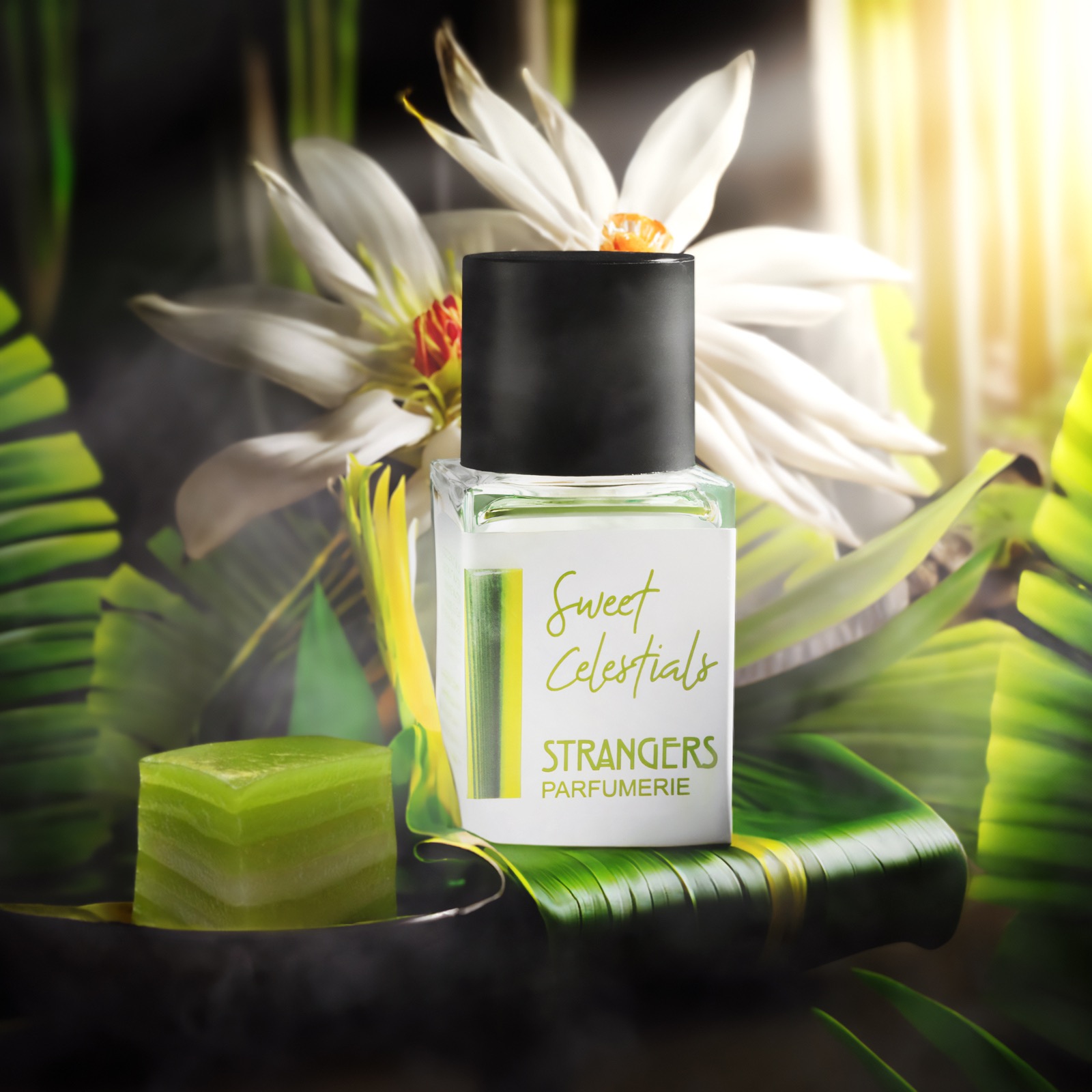 Sweet Celestials begins with the pandan leaves, sweet with grassy and slightly coconut-like emitting a naturally sweet aroma that is reminiscent of vanilla or almond. This sweetness is one of the key characteristics that make pandan a popular ingredient in various culinary dishes, particularly in Southeast Asian cuisine. infusing the scent with a crisp and exotic allure of Nom Maew flower blossom (Rauwenhoffia Siamensis), a sweet and predominantly floral aroma that is both delicate and enchanting. The floral notes can be reminiscent of jasmine or gardenia, evoking a sense of natural elegance. adds an enchanting sweet fruity floral note, setting the stage for the aromatic wonder that follows.